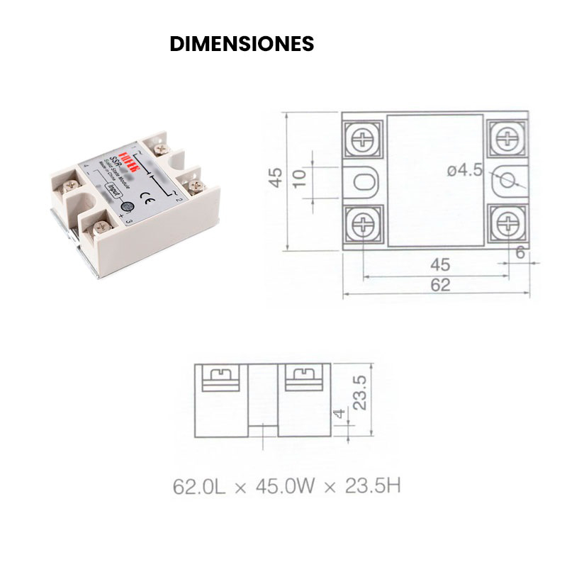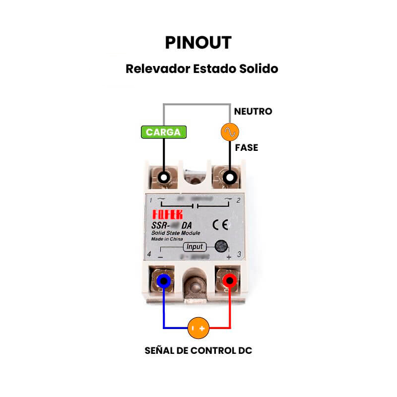 Tipo de relevador: DA (control DC – carga AC)