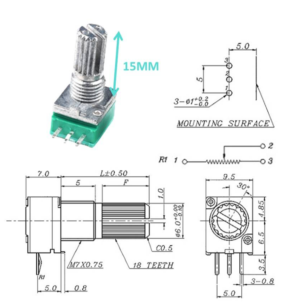(RK097N-B1K) Potenciometro RK097N B1K Lineal 1k Audio 1000ohms