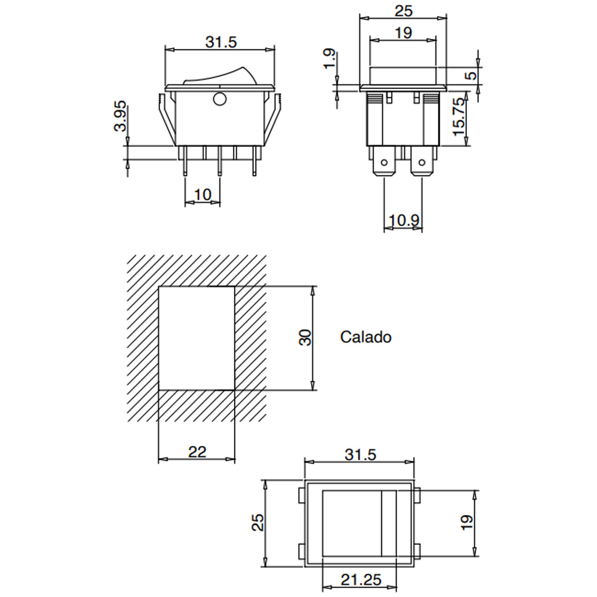 (LT-AP-SB-NN) Tecla Pulsador con Retorno al centro para Aparejo Sube Baja 10A