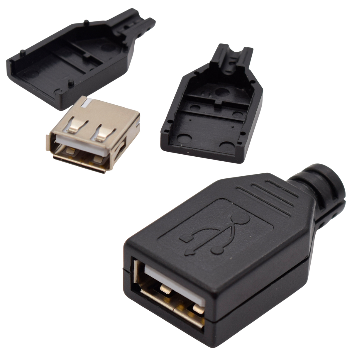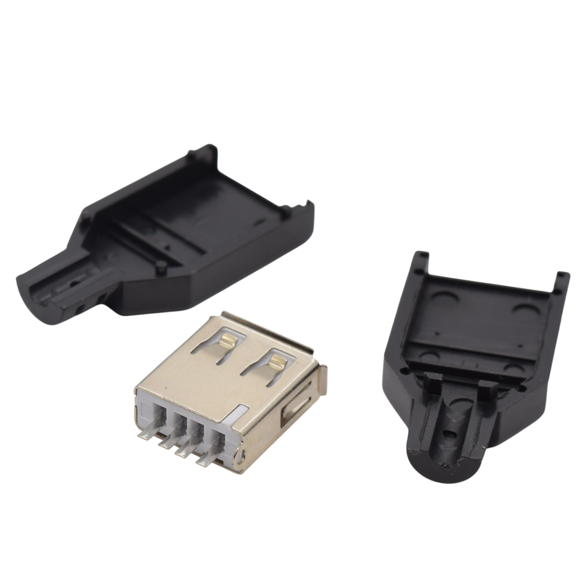 (KIT-CT-USB-A-MH) Conector Usb Tipo A Macho y Hembra Para Armar Cable CON carcasa