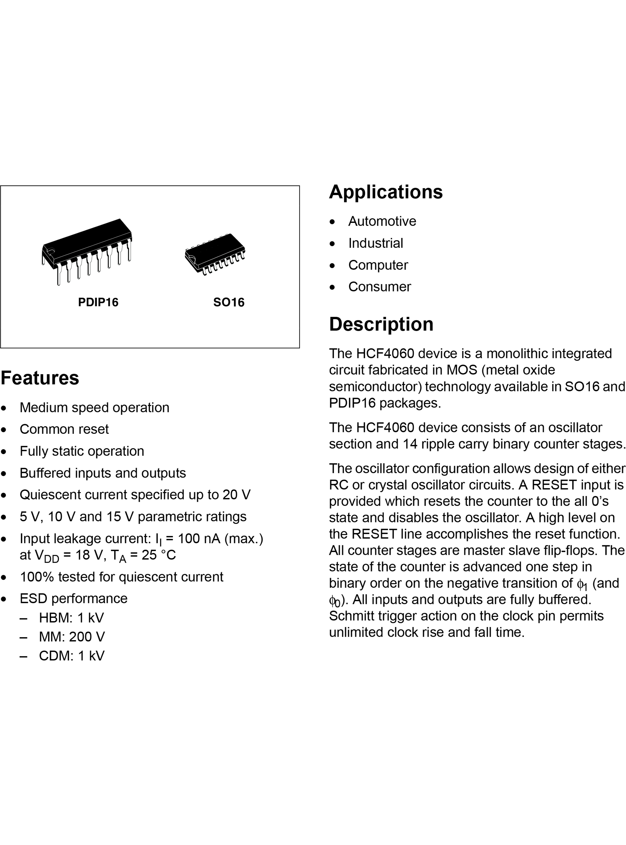 (CD4060D) CONTADOR DIVISOR OSCILADOR 14 ETAPAS (SMD)