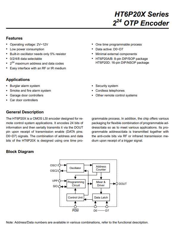 (HT6P20B) HT6P20B C.I. REMOTE CONTROL ENCODER (SO-08) (SMD)