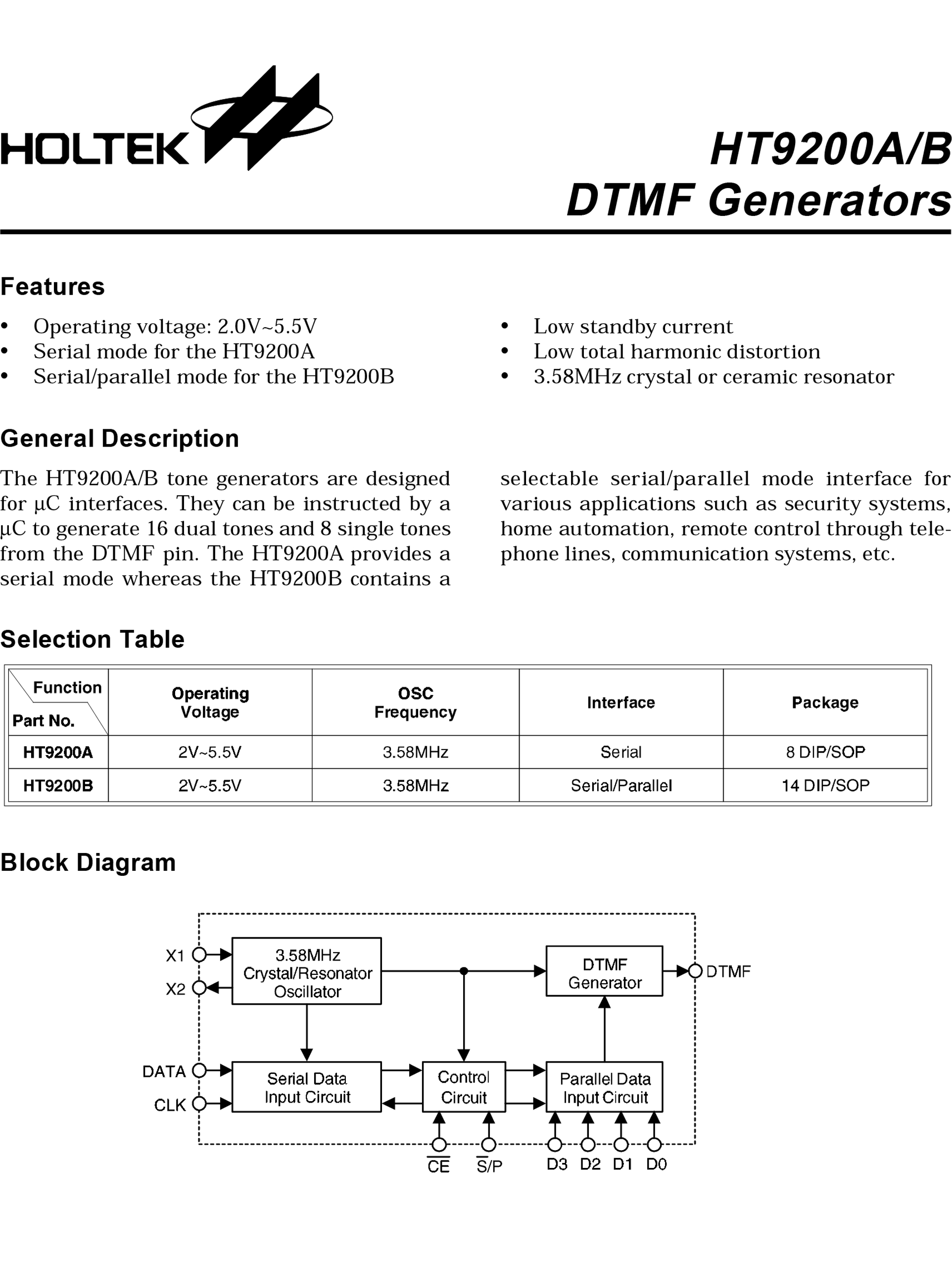 (HT9200A) Generador DTMF Serial-mode (DIP-8)