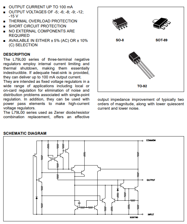 (79L08) Regulador de Tension NEGATIVO 8V 100MA (TO-92)