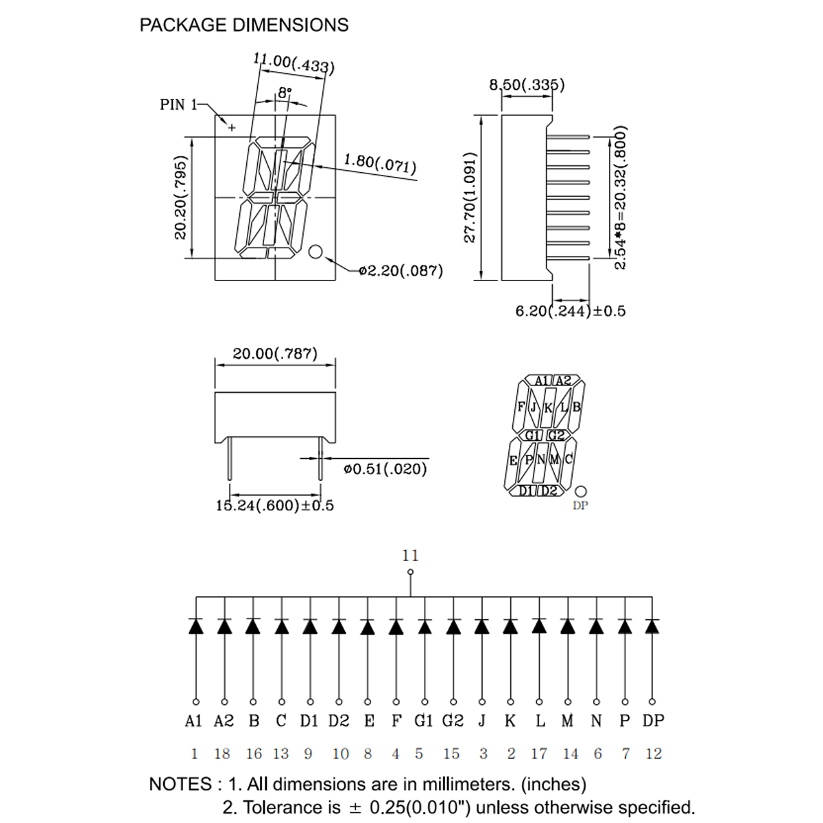 (DC828SR) DISPLAY 0.8" Catodo Comun Alfanumerico ROJO Super BRILLO 20x27.7 (20.2x11mm)