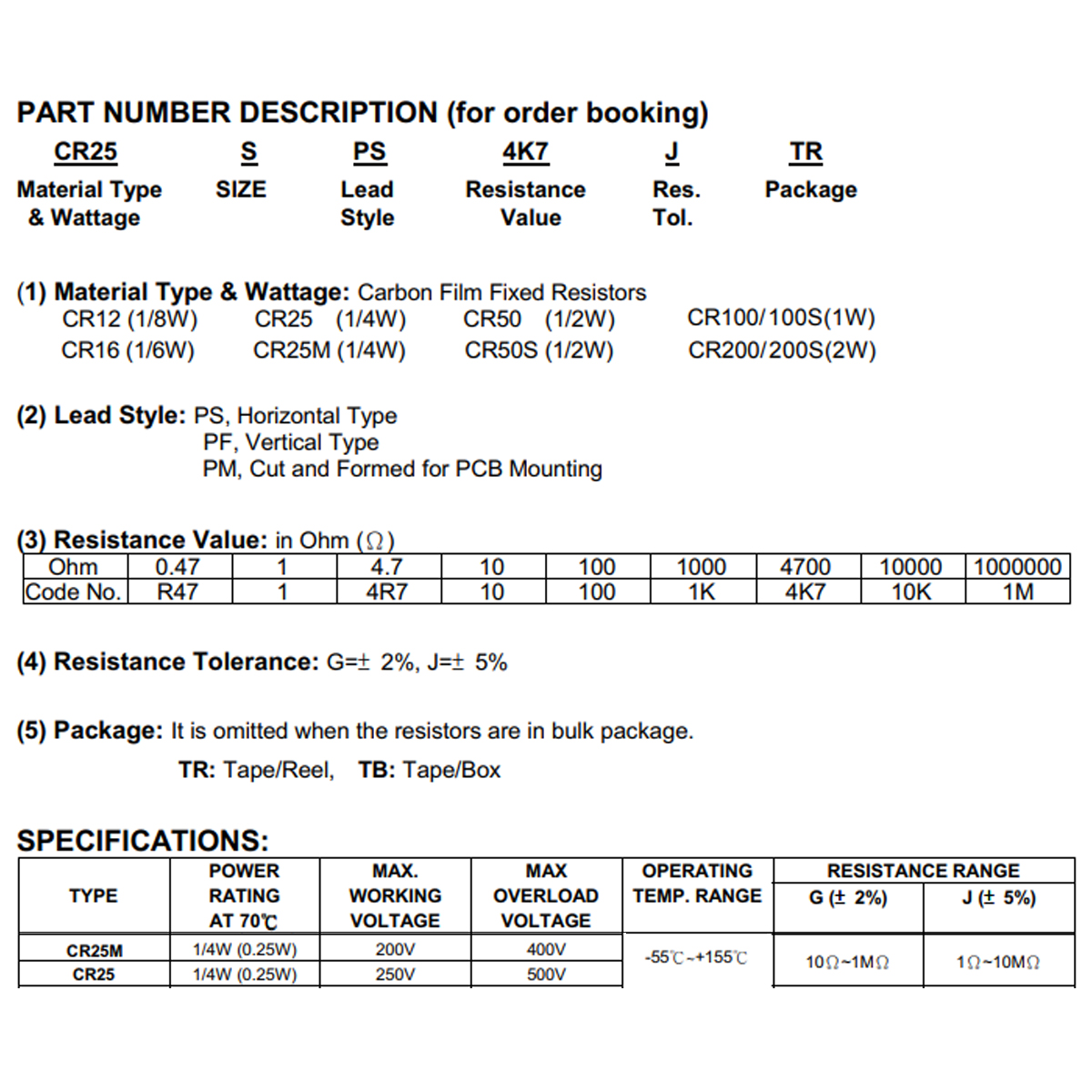 (CR25-8E2) Resistencia 1/4w 0.25w 8.2 Ohms 8E2 8R2 5% Carbon