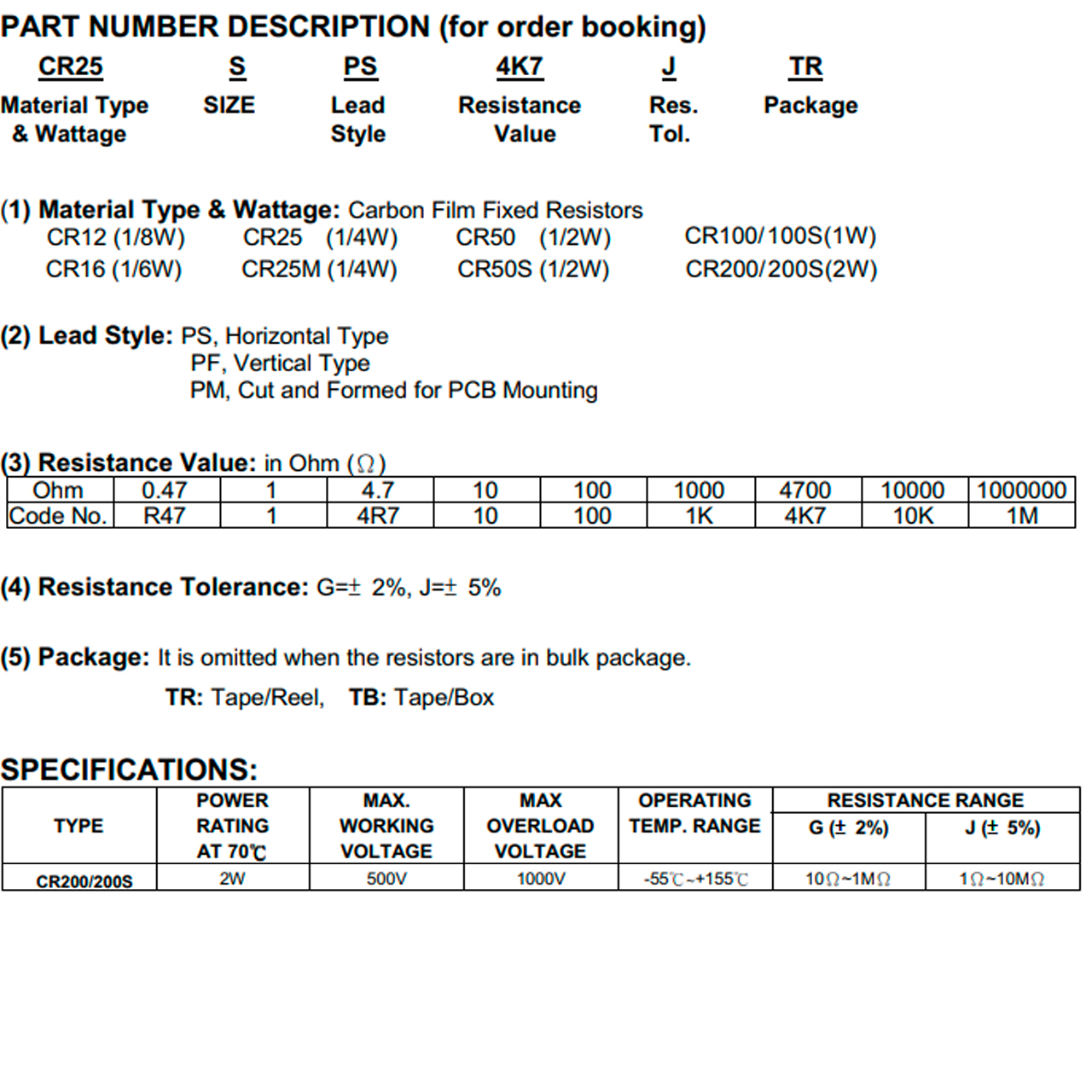 Carbon Film 1/4 Watt 5%