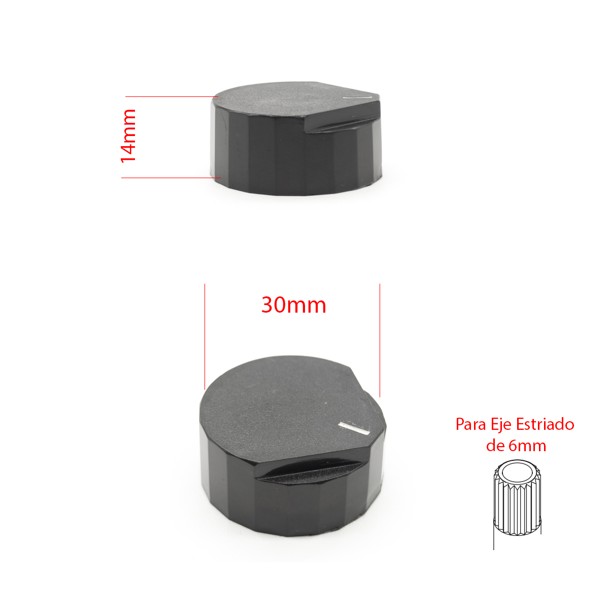 (PER-F3-N) Perilla Diametro 30mm Alto 14mm Para Eje Estriado Negra