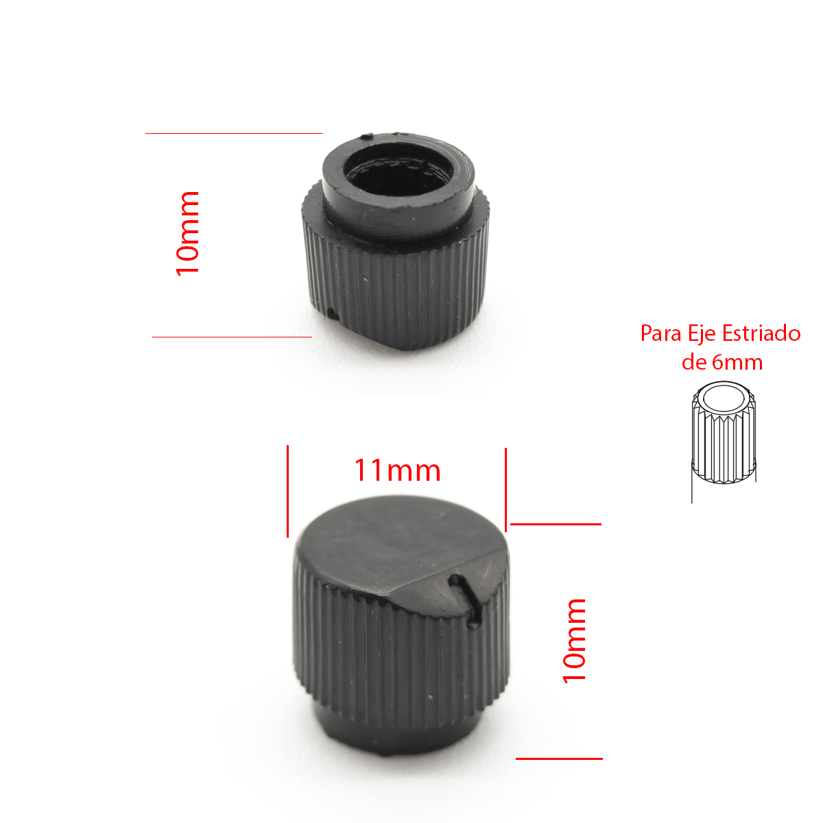(PER-D1-N) Perilla Diametro 11mm Alto 10mm Para Eje Estriado NEGRA