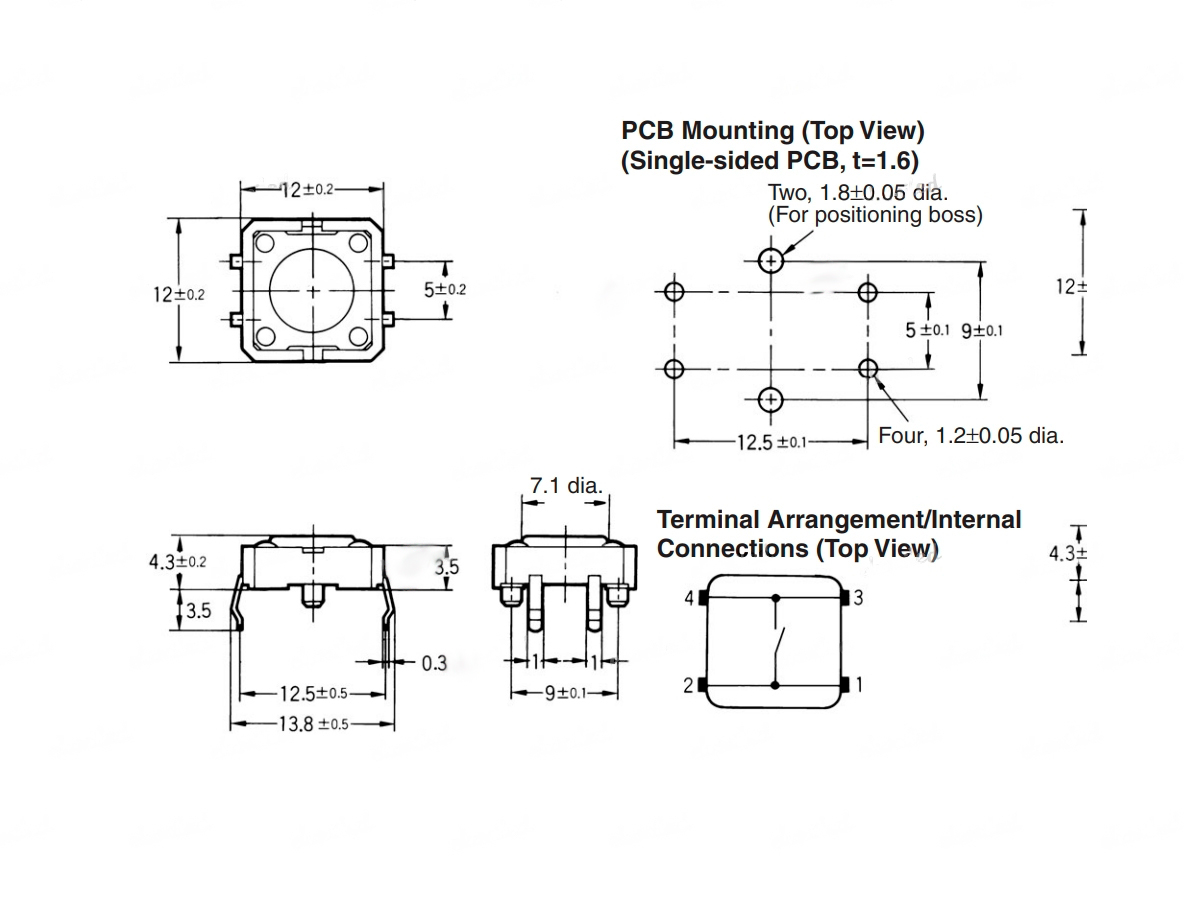 (TS4.3G) TACT SWITCH 4.3 MM (BASE 12X12MM)