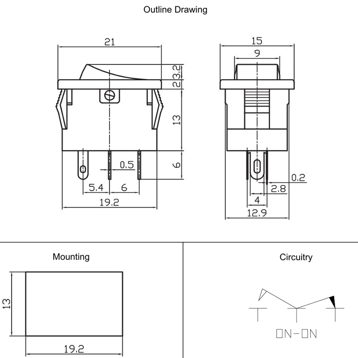 (LT30) TECLA 1 Polo 3A 250V ON-OFF LED ROJO 2v (LISA) 21x15mm (19.2x13mm)
