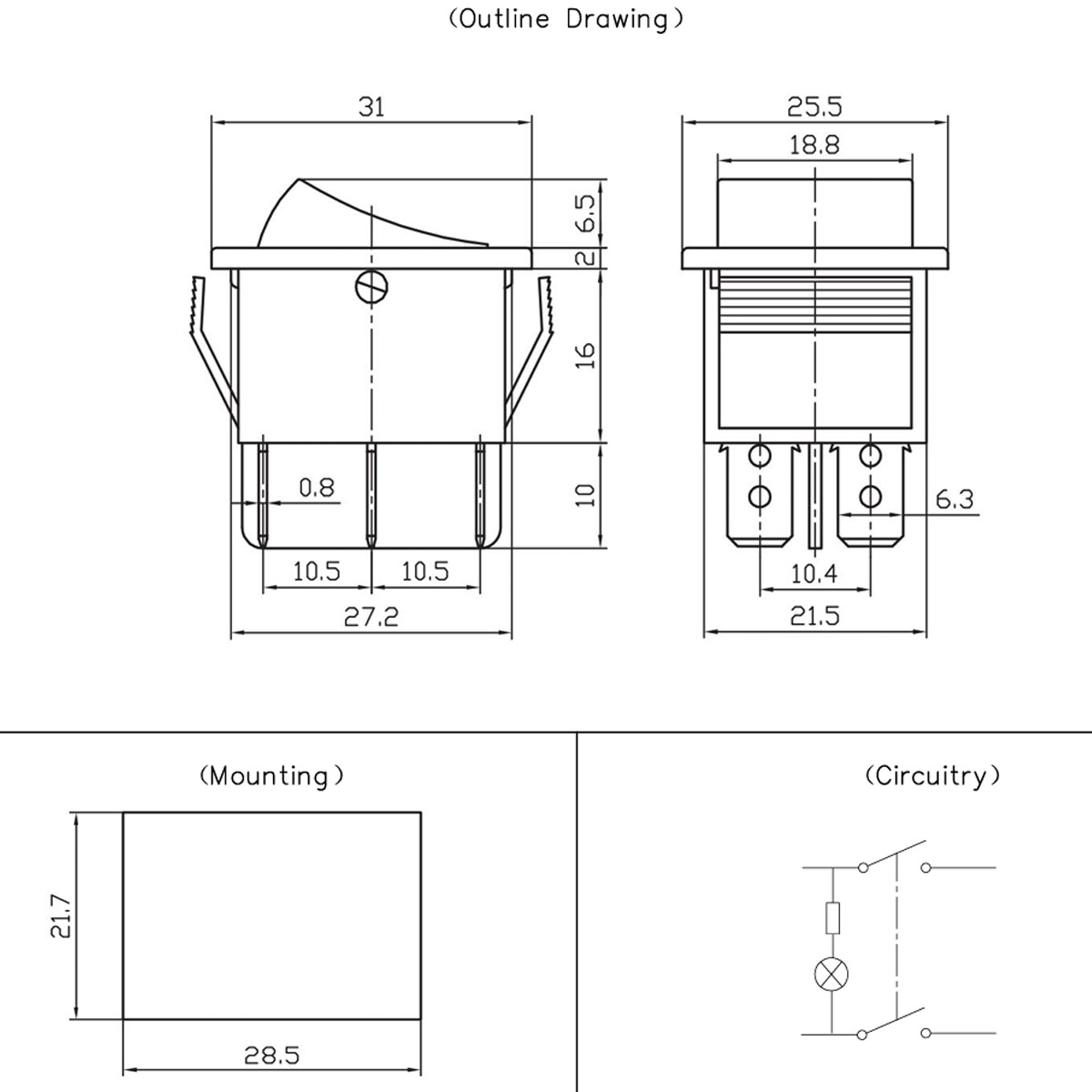 (LT225) TECLA 2 Polos 16A 250V ON-ON 28.5x21.7mm LUZ ROJA (I-II)