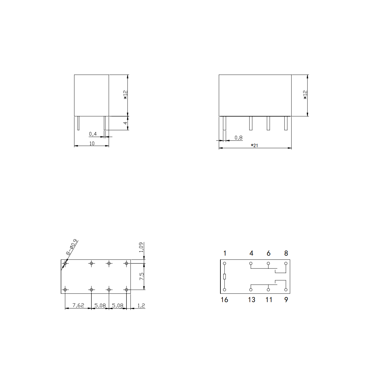 (HJR1-2C-D05) Rele Bobina 5V (70ohms) 1A 120V 2 Inversores (Doble Inversor) HJR1-2C D-05v