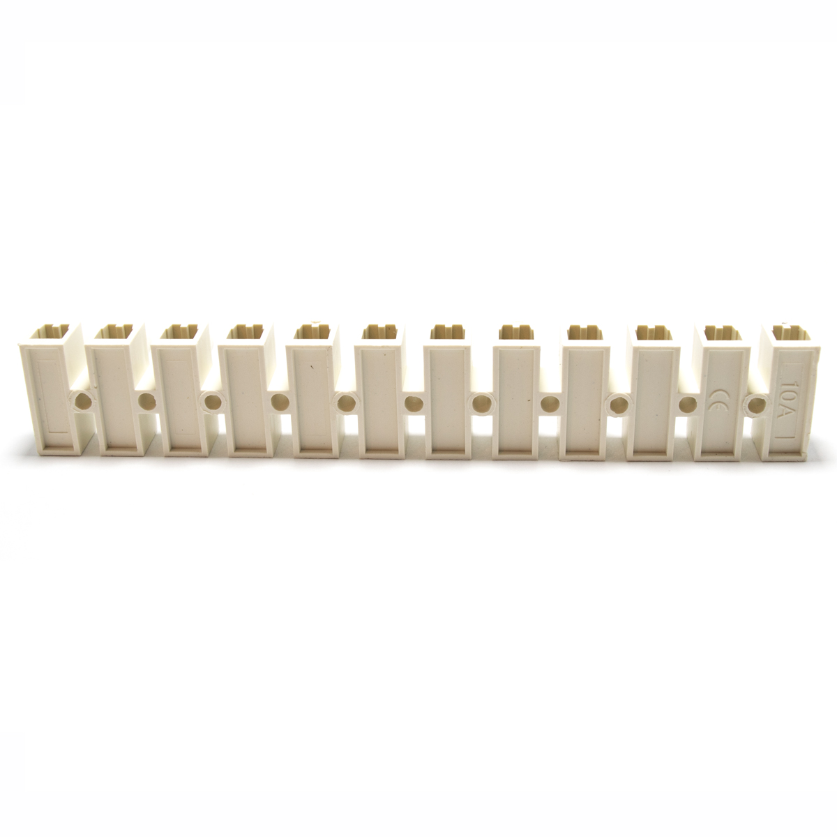 (BOR-10A) Bornera 6mm2 10A 380V 12 Polos 130mm IGNIFUGA Blanca
