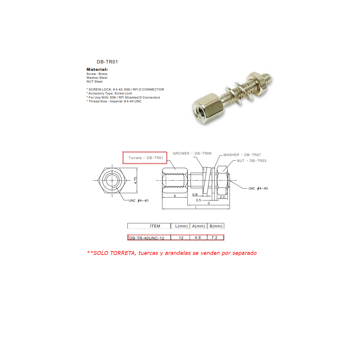 (DB-TR01) Torreta Exagonal Roscada Tuerca Tornillo Para SUB-D