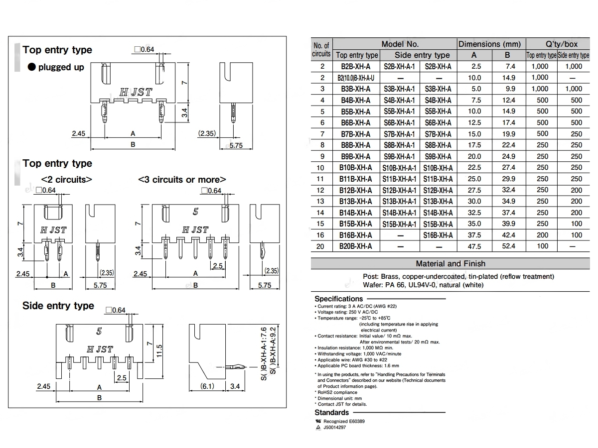 (WF250-9R) Conector MACHO Tipo JST XH 2.54mm 9 Vias 90° Para PCB