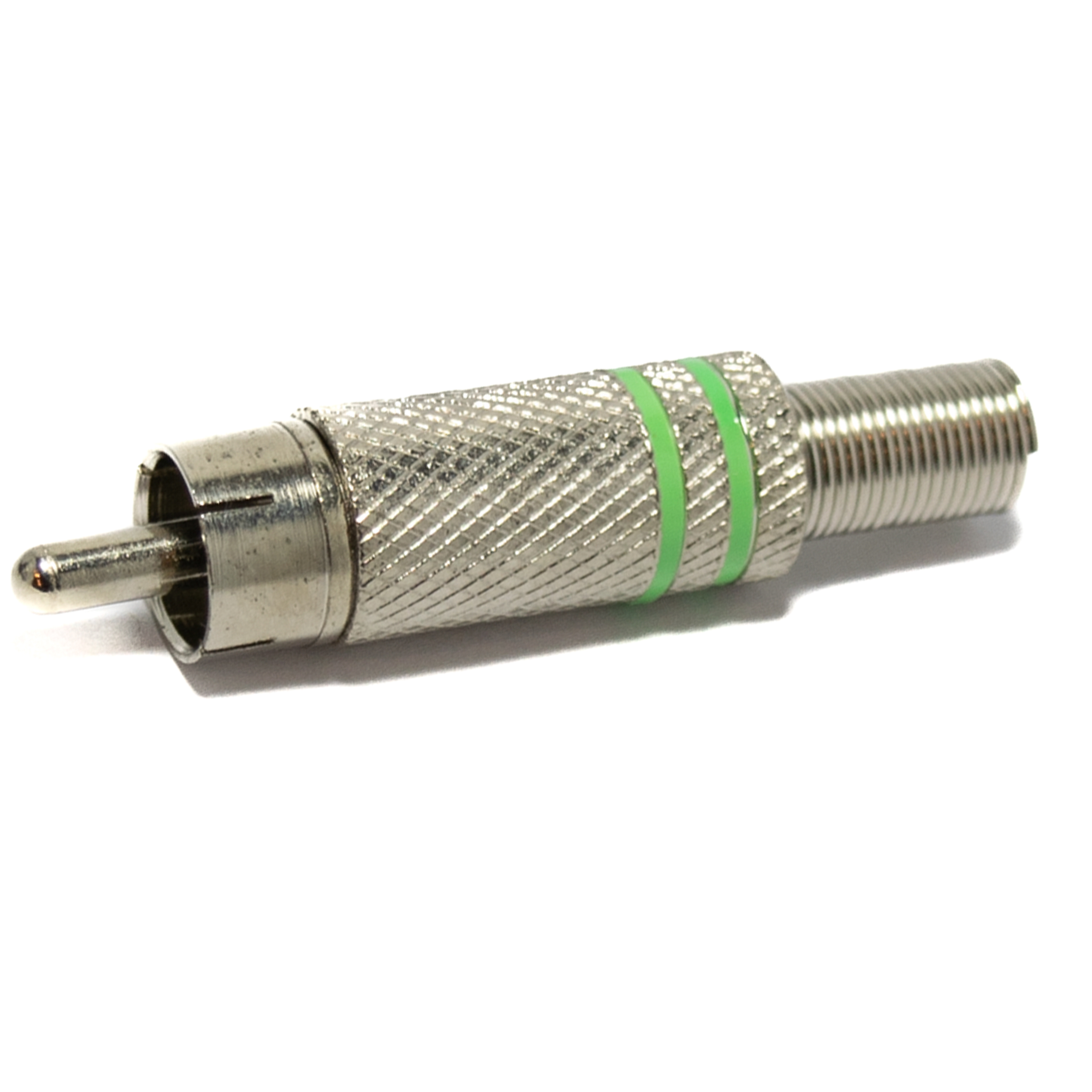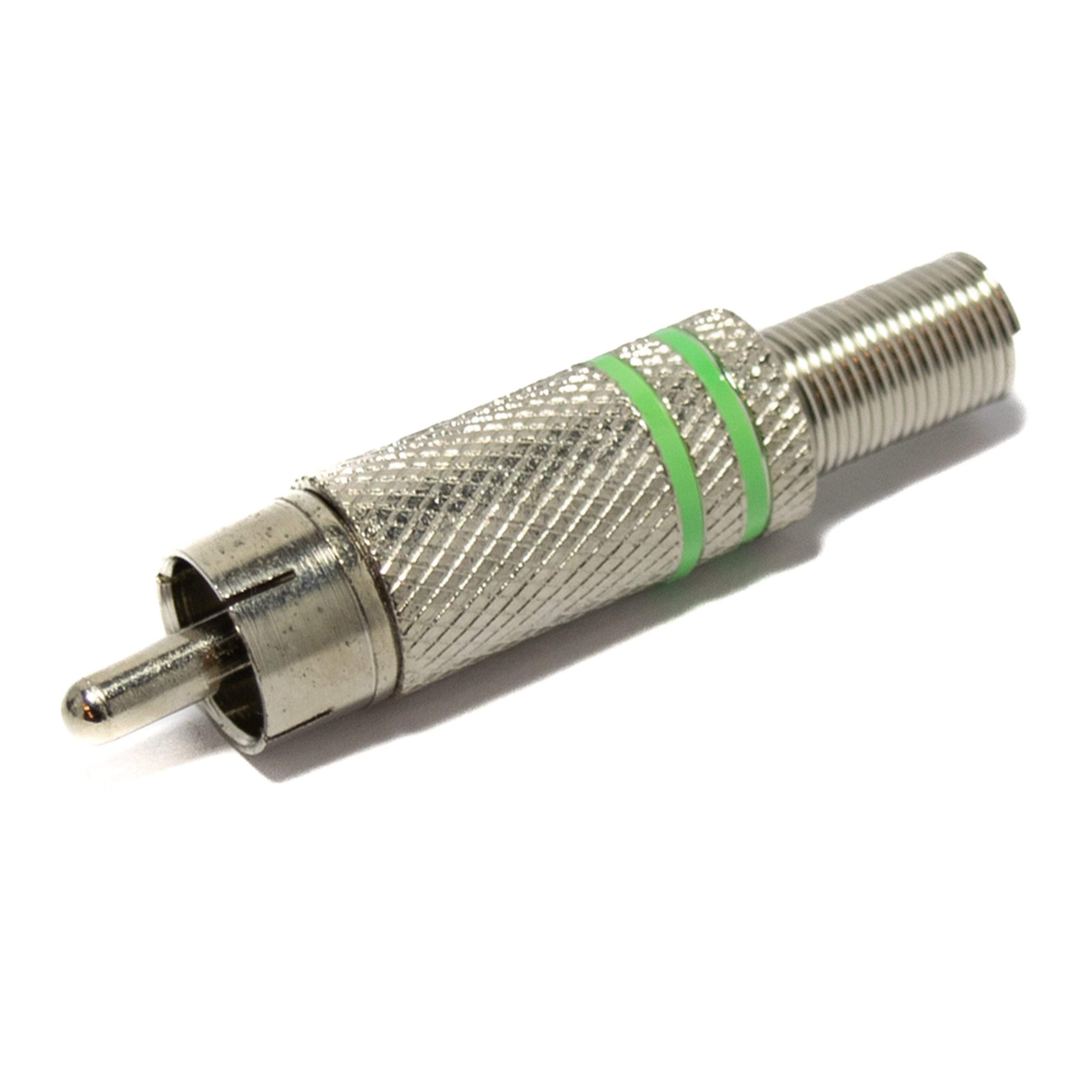 (PL-RCA05-V) Conector Plug RCA Macho VERDE METALICO PLATEADAS Con Resorte 6.5mm
