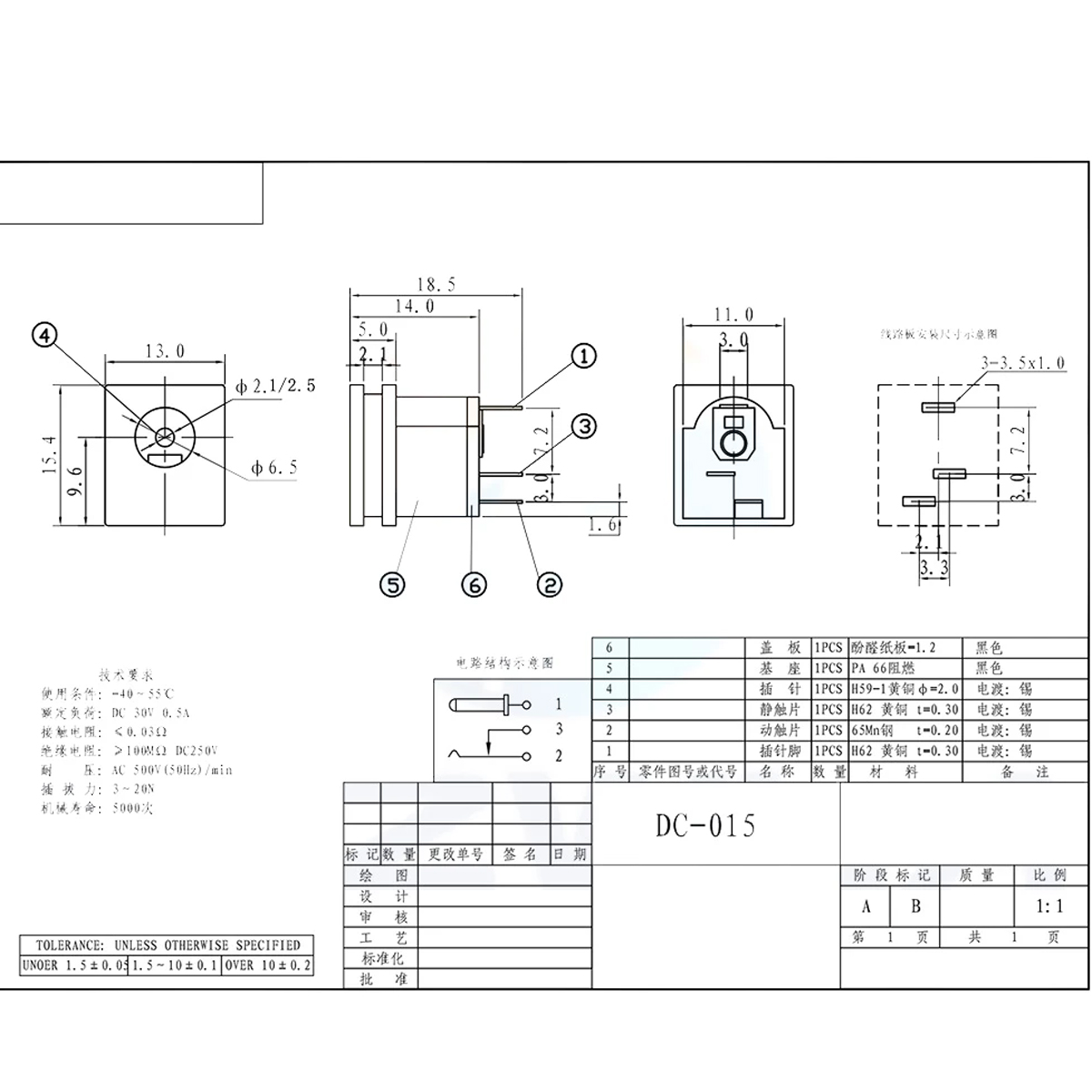 (JK-DC021-15) Conector Jack DC 2.1mm Para Circuito y Cable Con Corte