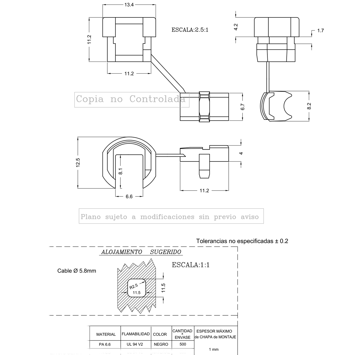(SG5740C) Pasachasis Pasachapa Prensacable 11.5mm (Cable 5.2mm - 6mm Diametro)