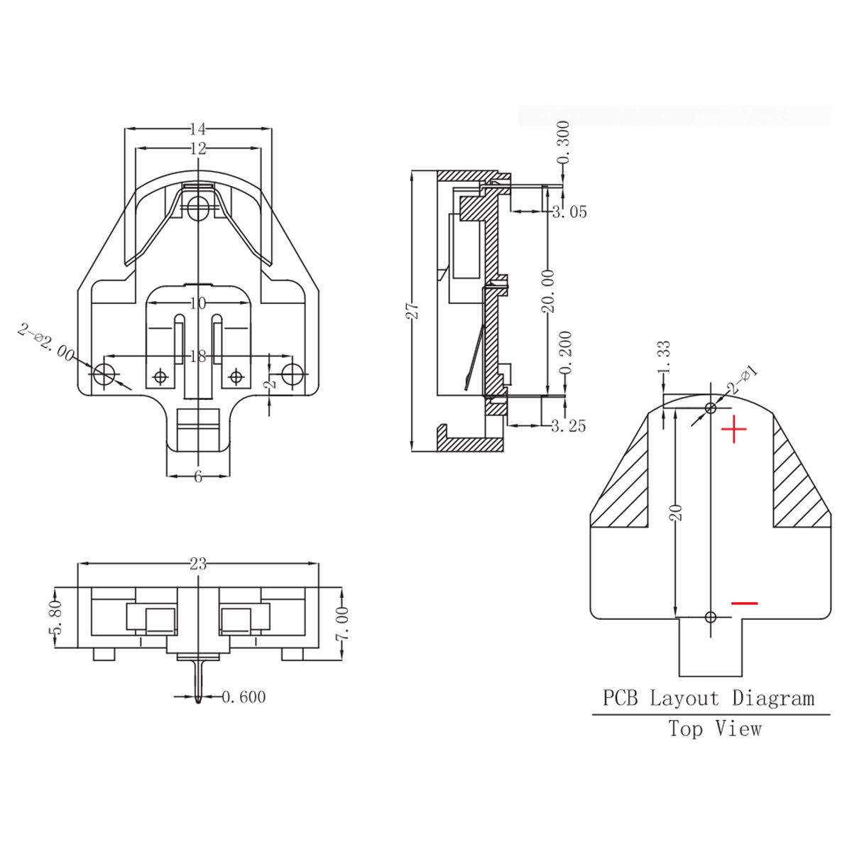 (BH2032-12) Portapilas x 1 CR2032 (23x27x5.8mm)