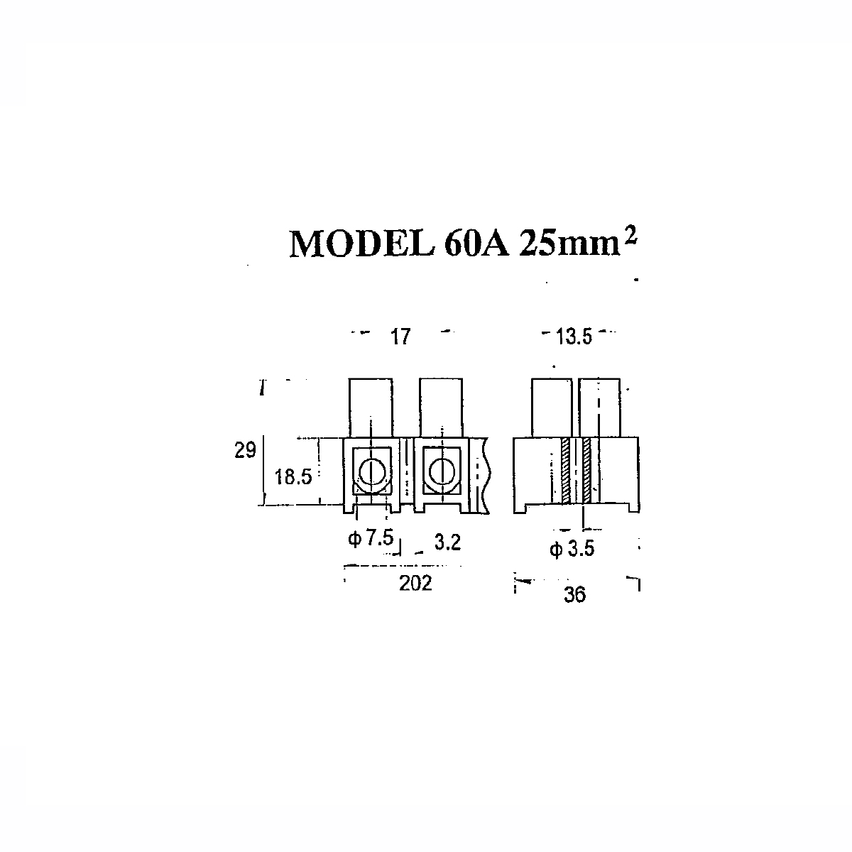 (BOR-60A-N) Bornera 25mm2 60A 380V 12 Polos 190mm IGNIFUGA Negra(19.3cm x 3 x 2.6cm)