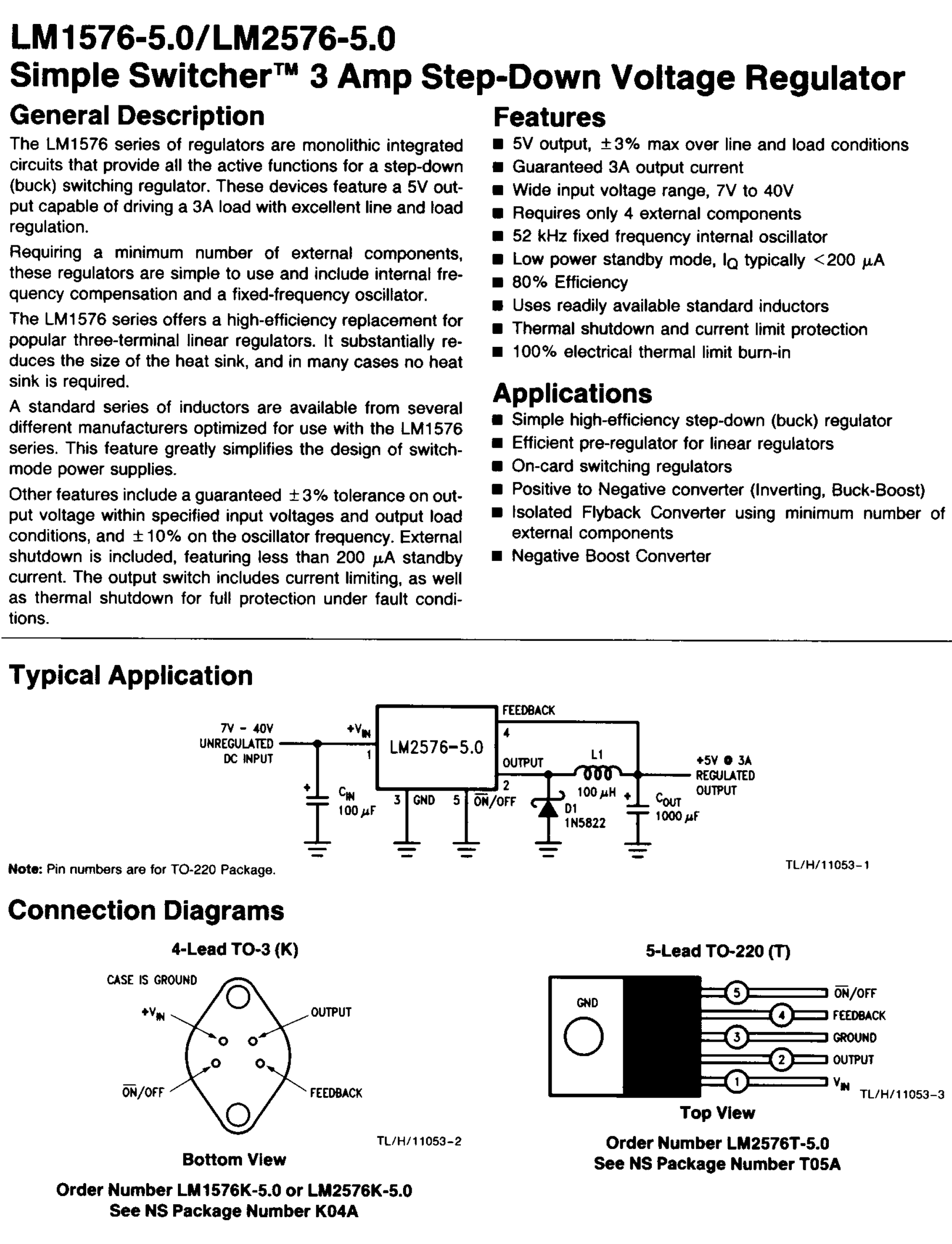 (LM2576T-5) C.I. Step-Down VOTAGE REGULATOR 3A 5V TO-220-5