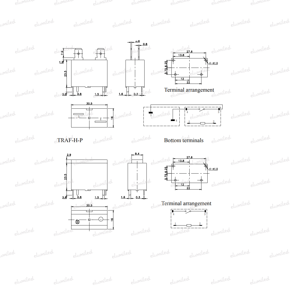 (TRAF-D12) RELE BOBINA 12VDC (160E) 20A 25A 250VAC 1 Contacto Normal Abierto TRAF D-12VDC-H