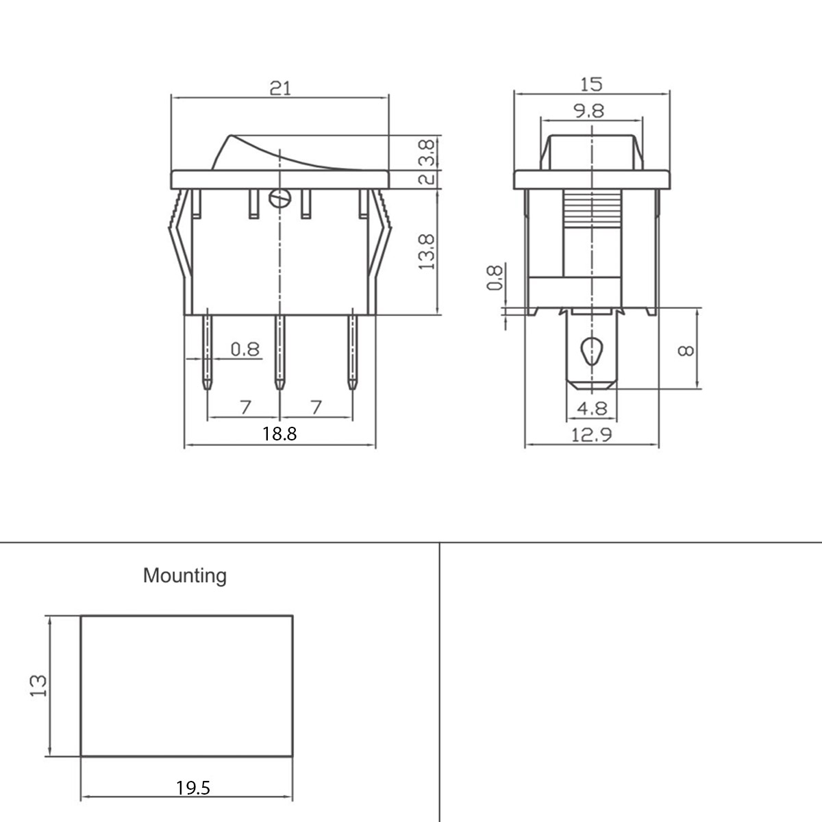 (LT10) TECLA 1 Polo 6A 250V ON-ON 21x15mm (19.2x13mm)