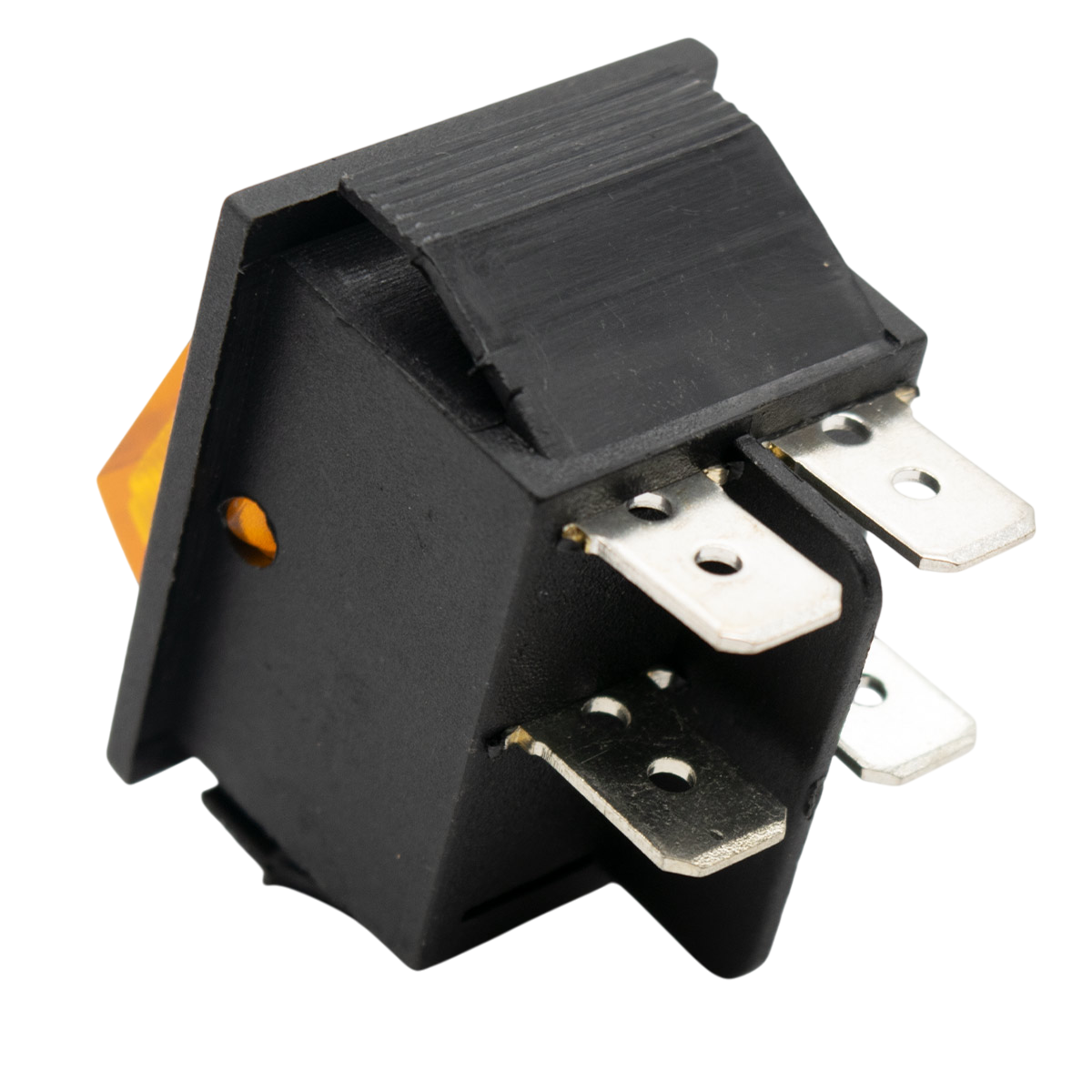 (LT205-PLANA-AM) TECLA 2 Polos 16A 250V ON-OFF LUZ AMARILLO (0-I) PLANA 30.8x25.5mm (28.5x21.7mm)