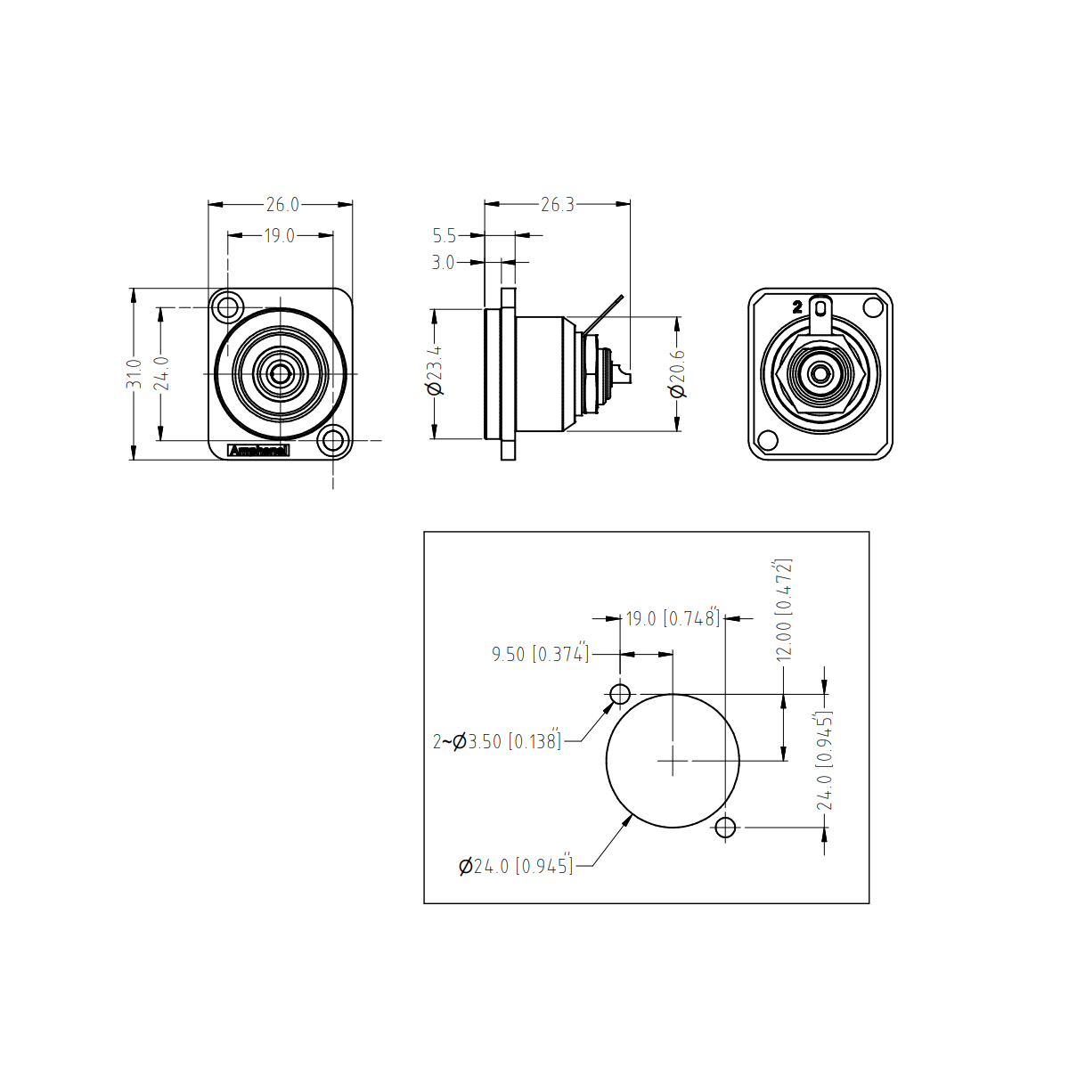 (ACJB-YEL) Conector RCA Hembra Para Panel AMARILLO D-Type Amphenol PATCHERA