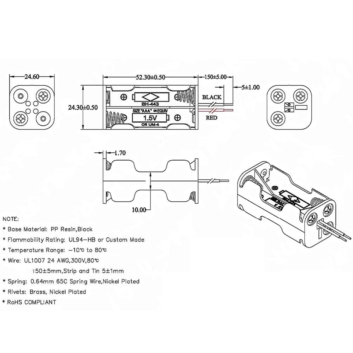 (BH-UM443) Portapilas 4 AAA Triple Ax4 Con cable 15cm (53x25x24mm) (PP-4-AAA-2X2)
