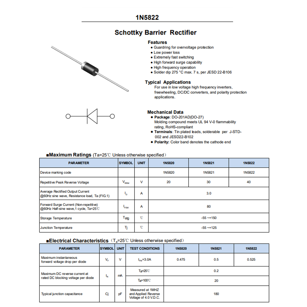 (1N5822) DIODO SCHOTTKY BARRIER 3A 40V