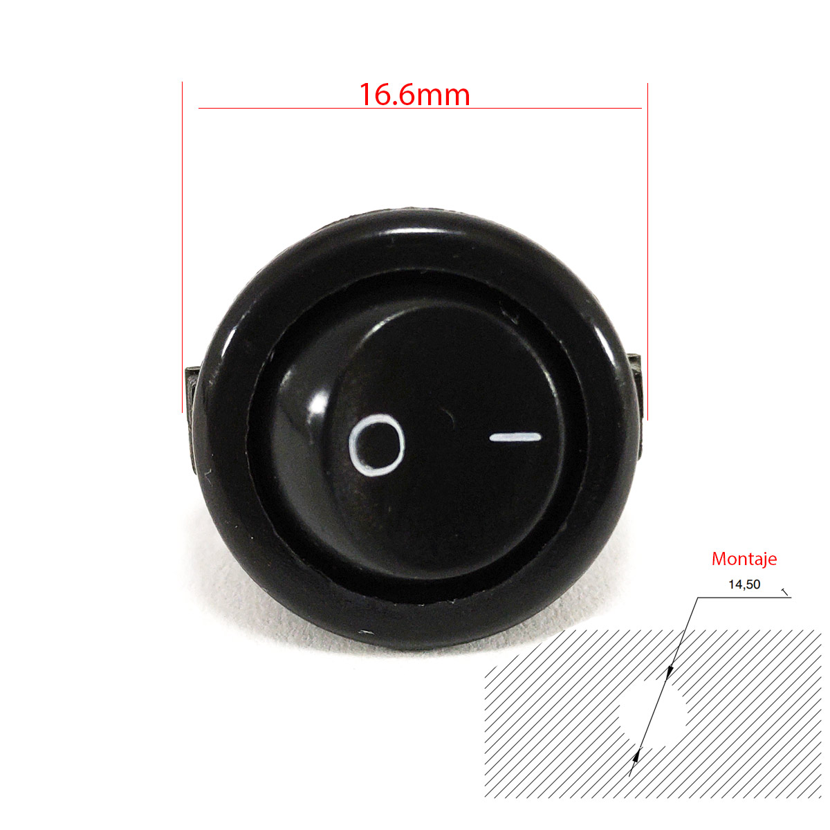(LTR1601-NN) Llave Tecla Redonda 16mm 2A 250V Unipolar Negra