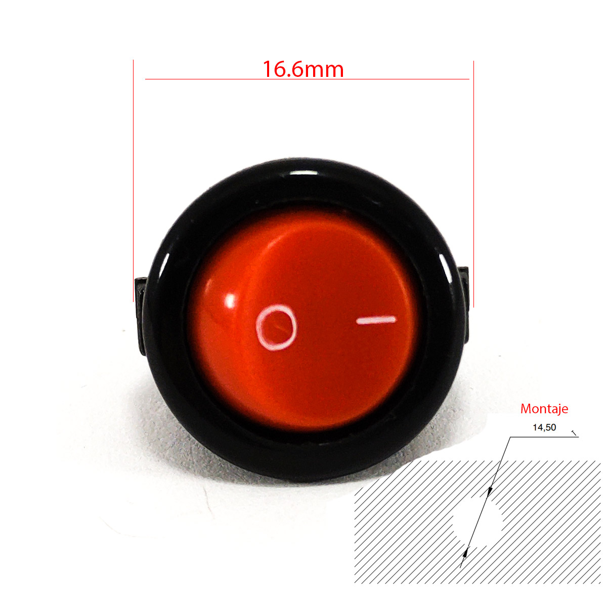 (LTR1601-NR) Llave Tecla Redonda 16mm 2A 250V Unipolar Negra Roja