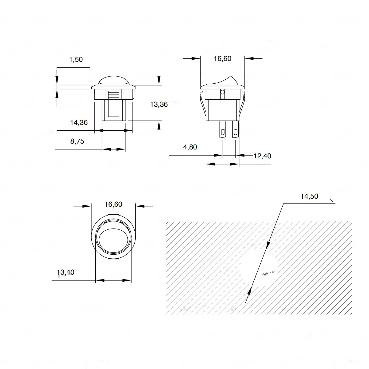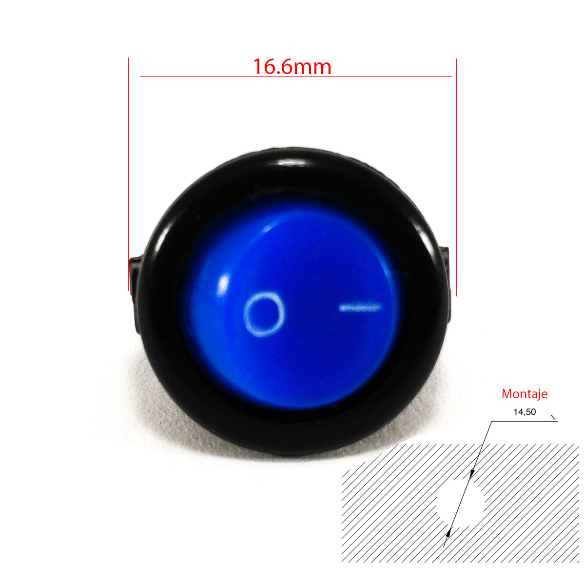 (LTR1601-NAZ) Llave Tecla Redonda 16mm 2A 250V Unipolar Negra Azul