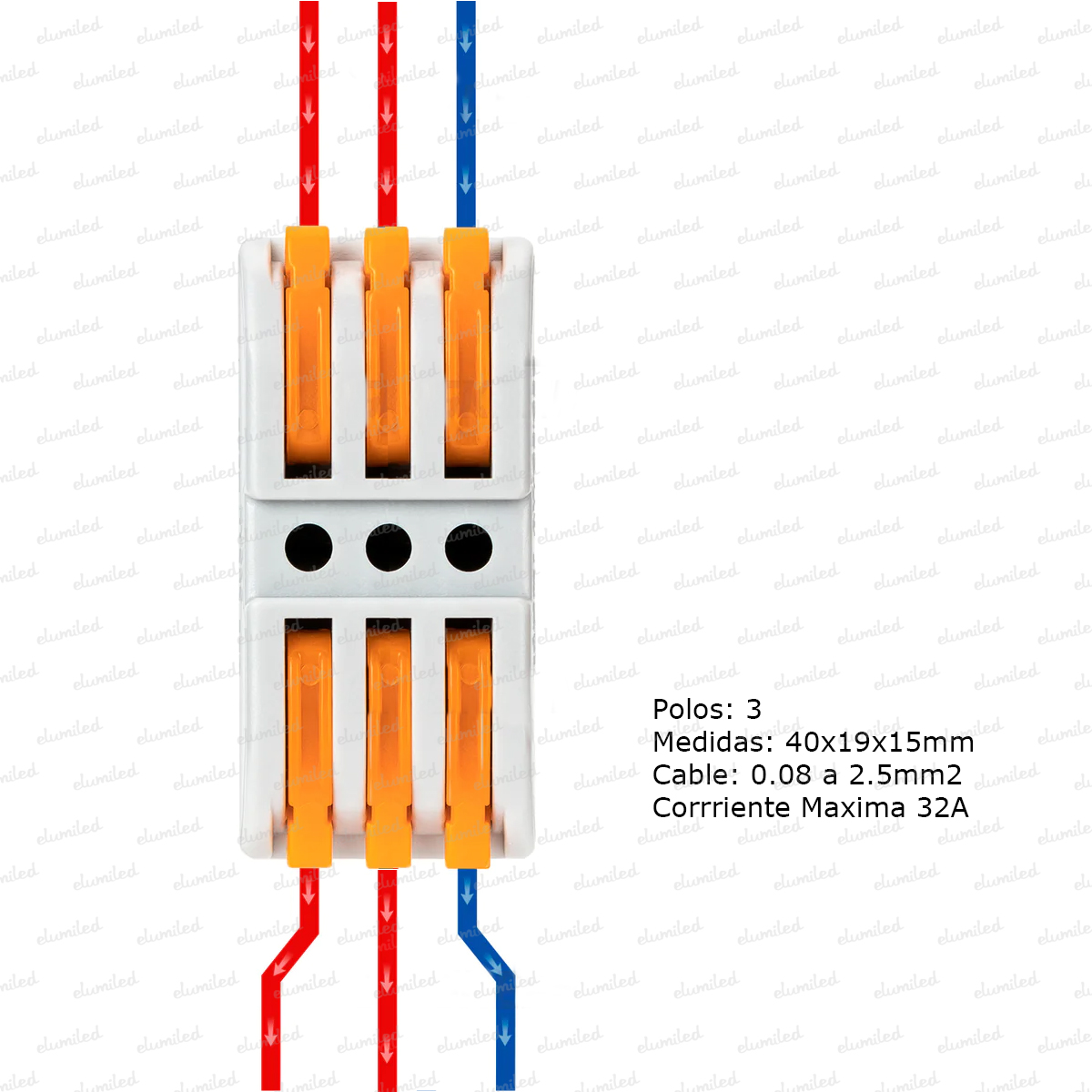 (RCT223) Empalme Rapido sin tornillos 3 Polos 3 Pin 0.08 a 4mm2