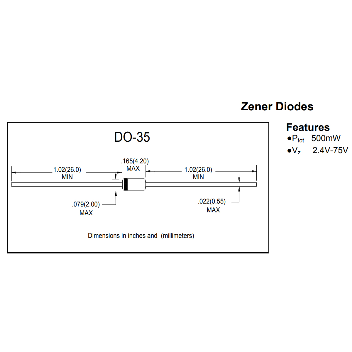 (ZN9V1) DIODO ZENER 9V1 500MW 5% (1N5239B)