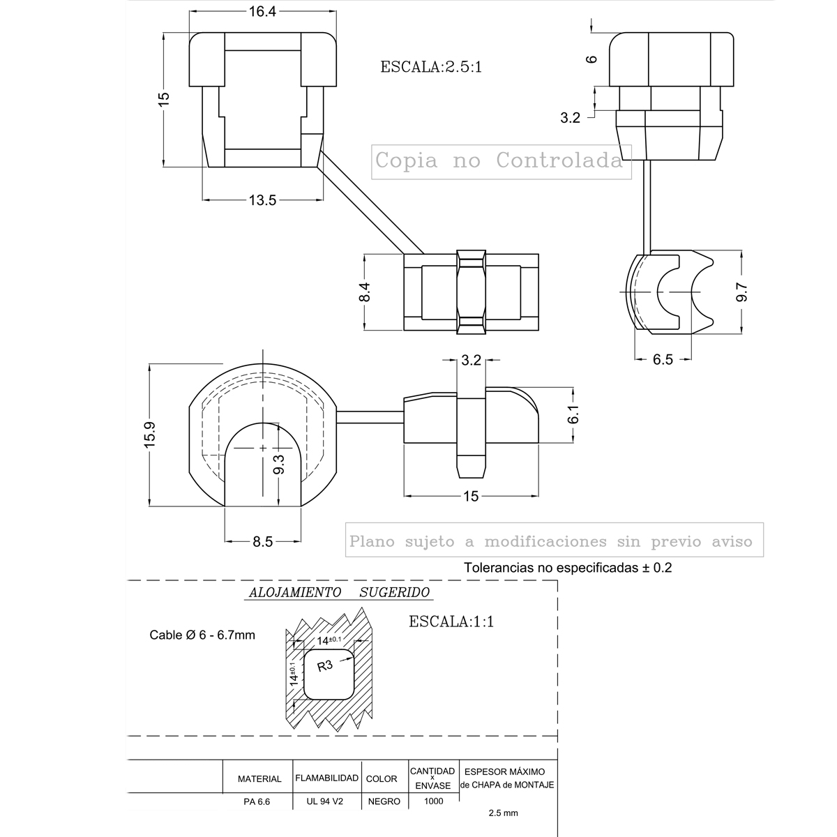 (SG57403-NE) Pasachasis Pasachapa Prensacable 14mm (Cable 6mm - 6.7mm Diametro)