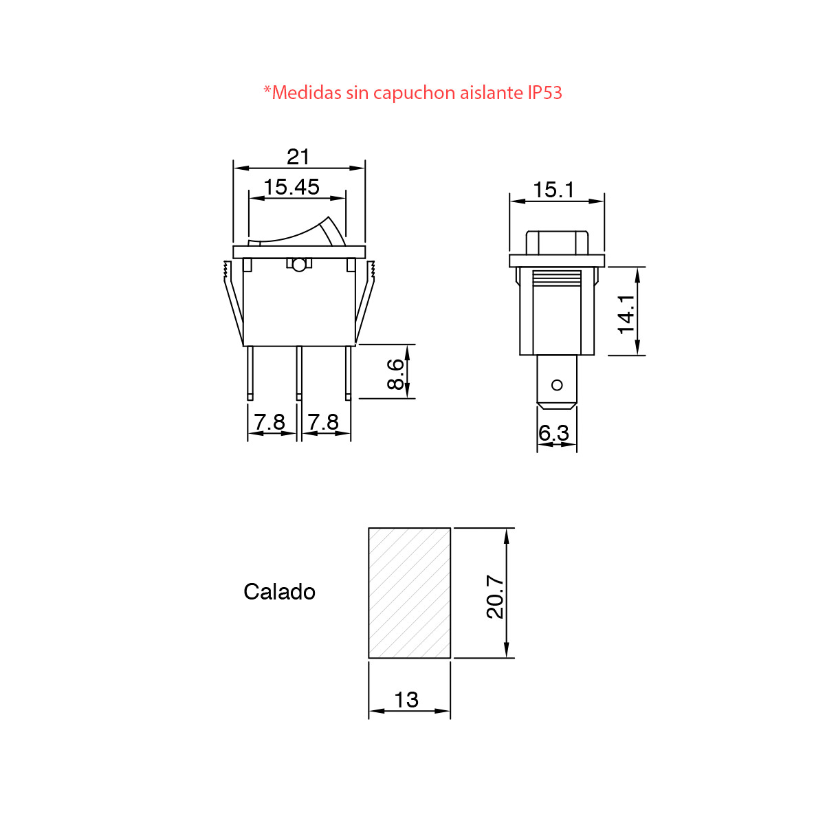 (LT2115-IP53-NR-L) TECLA 1 Polo 10A 250V 21x15mm (Calado 20.7x13mm) Roja Luz Estanco SPST