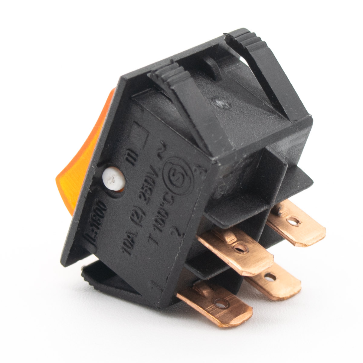 (LT3125-NA-L) TECLA 2 Polos 10A 250V ON-OFF (0-I) 31.5x25mm (Calado 30x22mm) Ambar Neon DPST