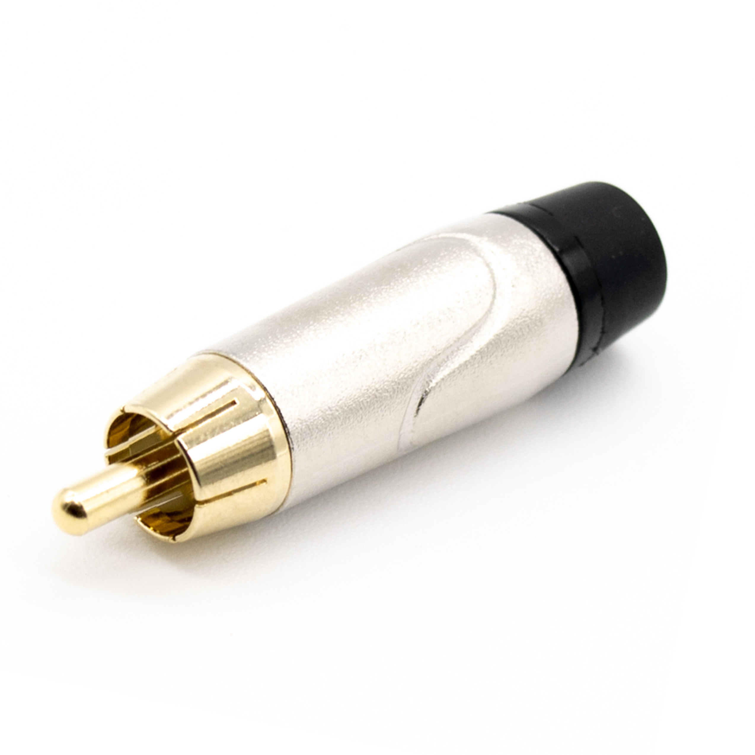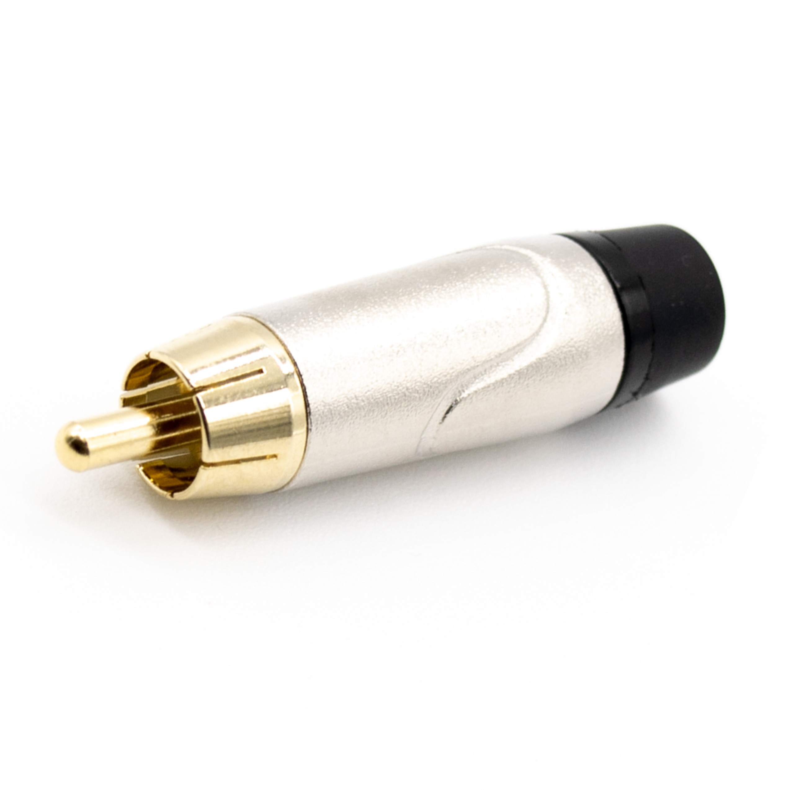 (PL-RCA94-PN) Ficha Conector Rca Macho Metalico Plateado Negro Cable 6mm