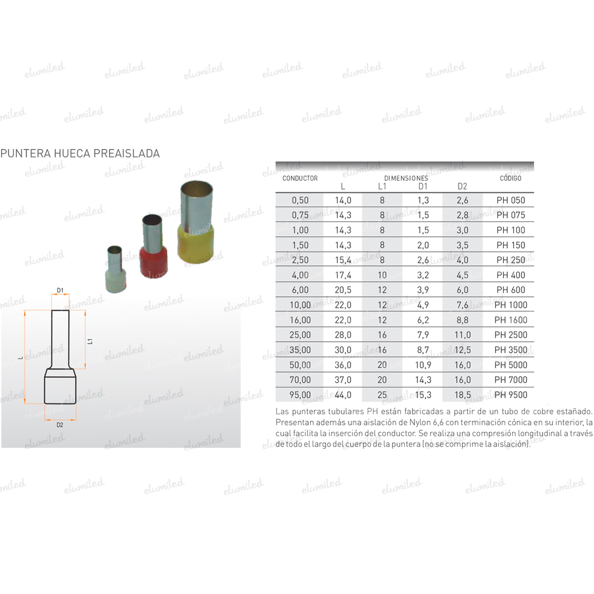 (TNP-PH-100) Terminal Preaislado Puntera TIF Hueca Rojo 1mm2