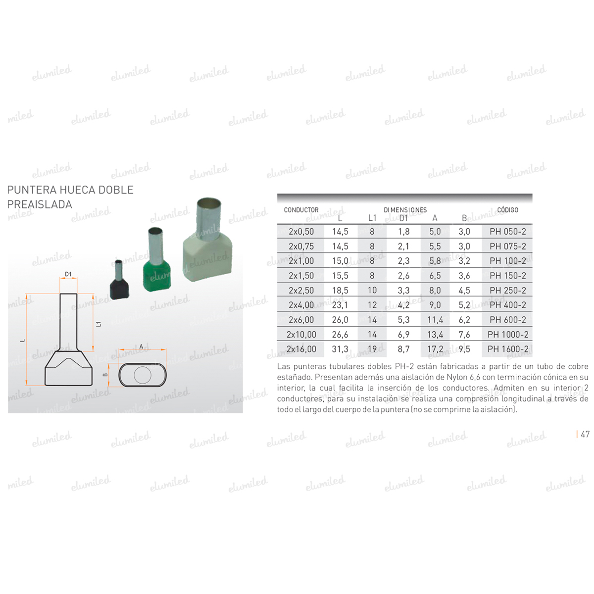 (TNP-PH-050-2) Terminal Preaislado Puntera TIF Hueca Doble Blanco 2x0.50mm2