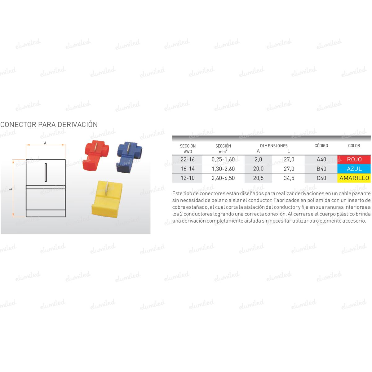 (DER-A40) Conector para Derivacion Rapido Rojo 0.25mm2 a 1.6mm2