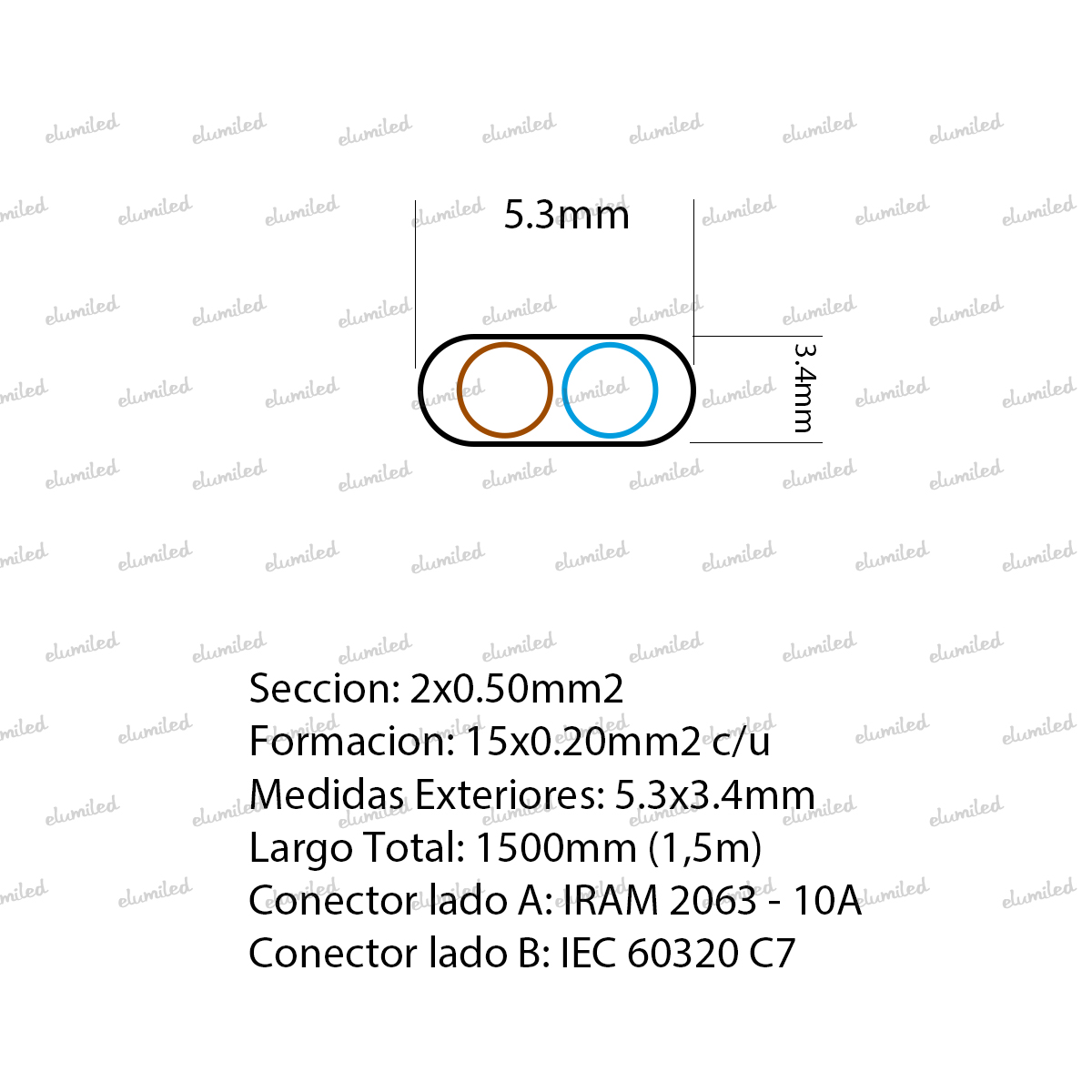 (INT-RAD8-1.5N) Cable Interlock (2 x 0.50mm) Largo 1.5m IRAM 2063 a Ficha 8 Radio - IRAM