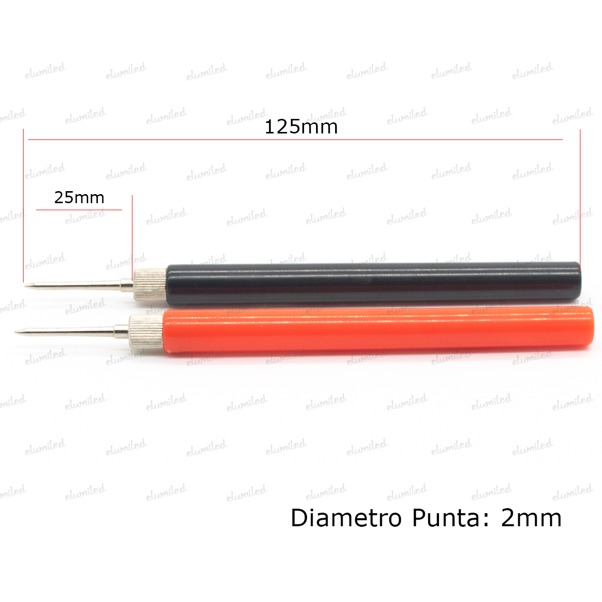 (PPT-L-NR) KIT Punta de Tester Larga Punta 25mm Largo Total 125mm Negro y Rojo