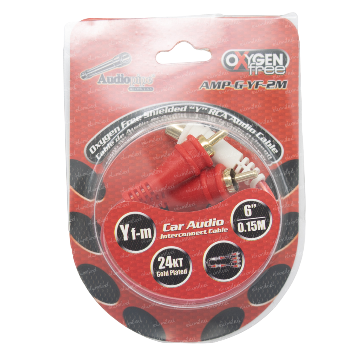 (CA-YRCA-1H2M-AMP) Cable Y Griega RCA 1 Hembra 2 Machos AudioPipe Libre de Oxigeno 20cm