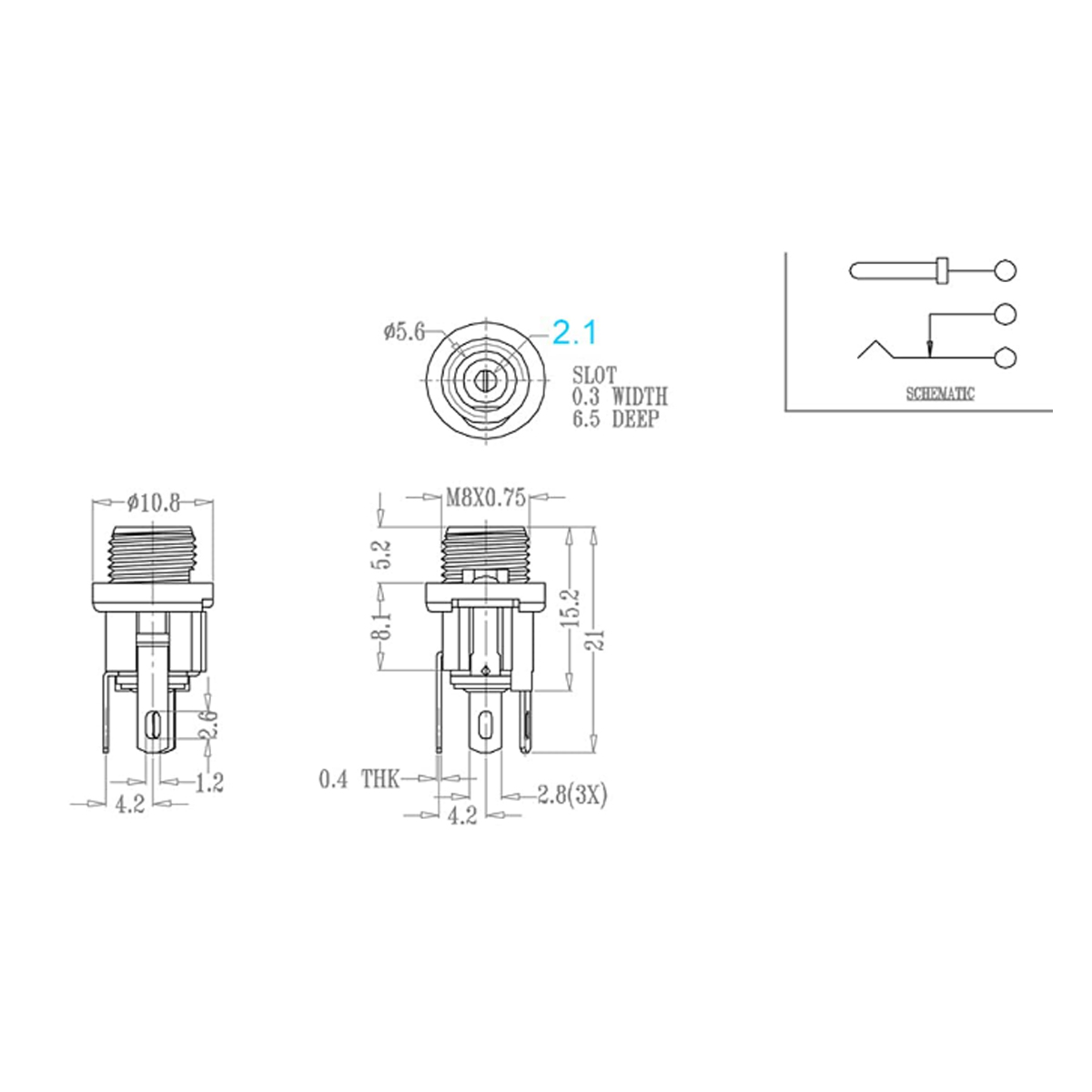 (JK-DC021-CH-LC) Conector Hembra Fuente DC Hueco 2.1mm Para CHASIS Con Corte