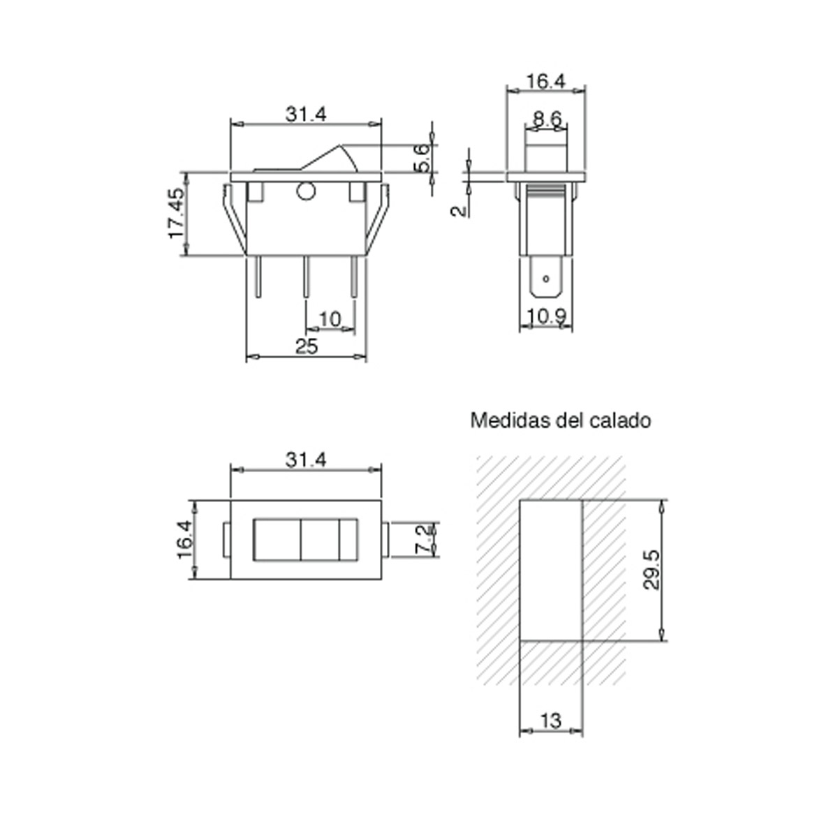 (LT-3116-NB-PM) Interruptor 31.4x16.4 (29.5x13) 2 Puntos con Punto Medio 1 Polo