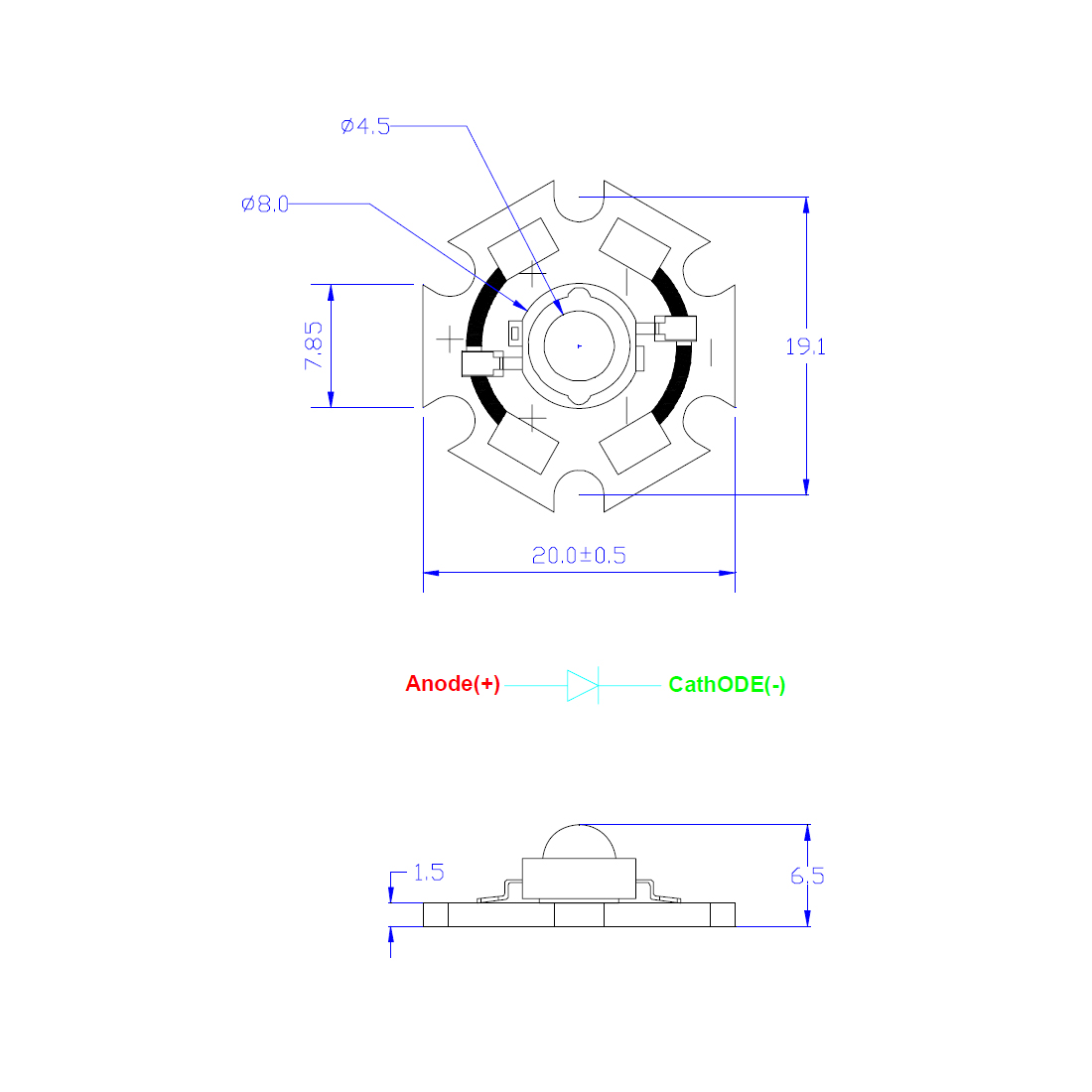 Led Estrella 5w AZUL 420-430nm Con PRE-Disipador